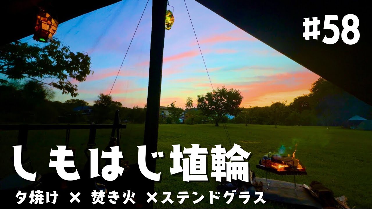 タイトル【しもはじ埴輪キャンプ場】栗の丘で夕焼けと焚き火とステンドグラス