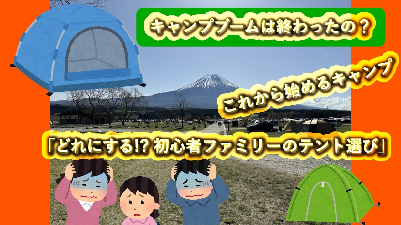 タイトル【キャンプ】キャンプブームは終わったの?初心者家族、テント選び迷走中!?ファミリーテント選び