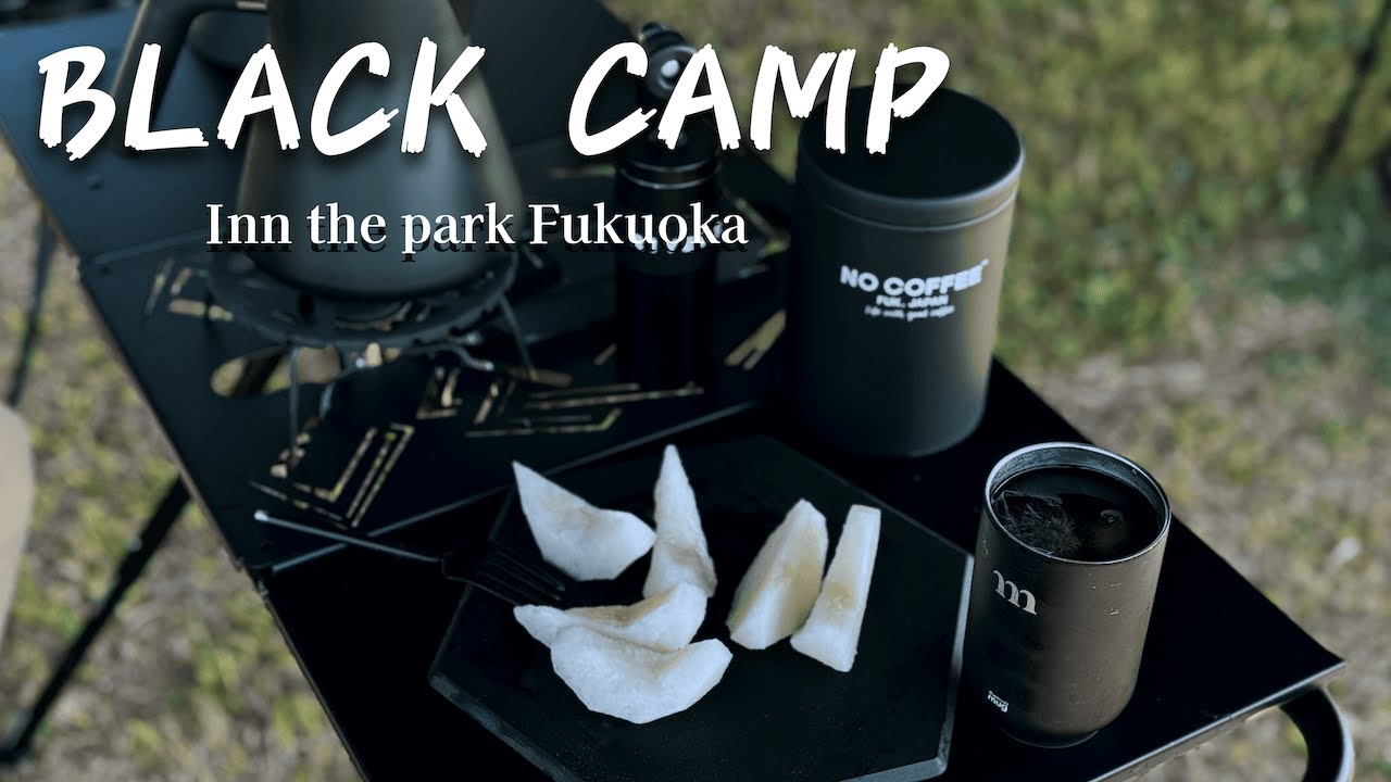 タイトル【BLACK CAMP】真夏のタープ泊|キャンプで映えるまな板とNO COFFEEグッズ