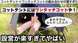 タイトル | コットテントにワンタッチコットを使ったら凄まじい時短になりました【キャンプ道具】 |