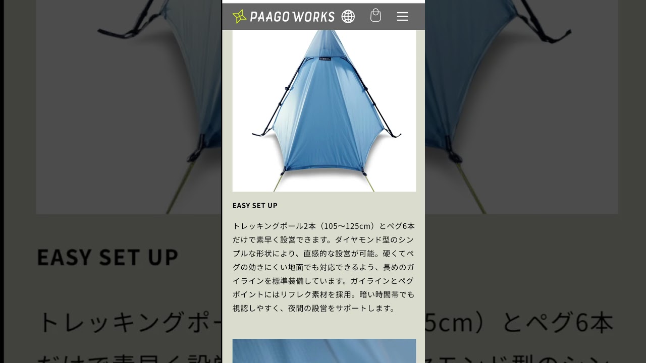 | タイトル | 『ZENN 2 POLE SHELTER』410g。日本の山の最適解をパーゴワークスが目指したテント。軽くて、風に強い! |