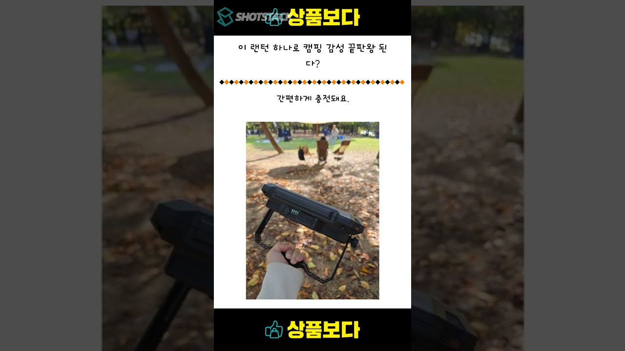 | タイトル | 이 랜턴 하나로 캠핑 감성 끝판왕 된다? | #캠핑랜턴 #휴대용랜턴 #무선충전 |