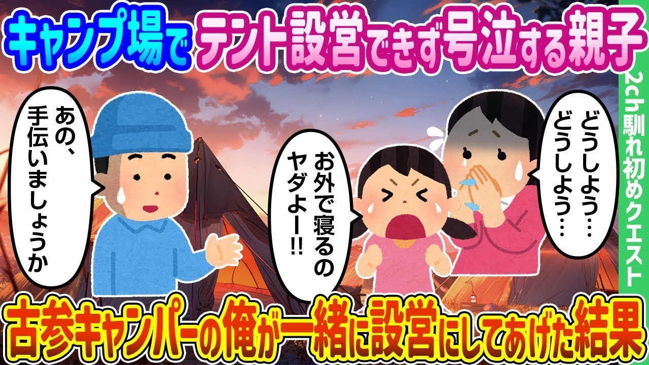 | タイトル | キャンプ場でテントがうまく設営できず涙を流す親子を見て、長年のキャンパーである私は手伝うことにした。 |