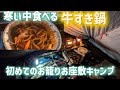 | タイトル | 初めてのお籠りお座敷キャンプに挑戦!ずっとやりたかった寒い中食べる牛すき鍋は感動、、、 #キャンプ飯#キャンプ#アウトドア#冬キャン#お籠りキャンプ#お座敷キャンプ#エモい |