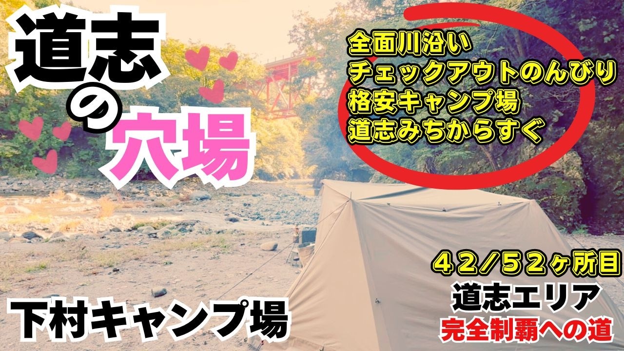 | タイトル | 【このキャンプ場がすごい】道志の穴場中の穴場キャンプ場教えます。全サイト川沿い!格安キャンプ場!チェックアウトもゆっくり!こんな素敵なキャンプ場で完ソロ出来るなんて最高だ【下村キャンプ場】 |