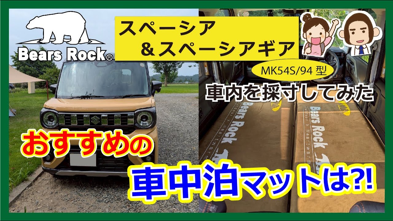 スペーシア・スペーシアギア(MK54S/94型)におすすめの車中泊マット-サイズ・段差解消・寝心地を検証してみた – Bears Rock公式チャンネル