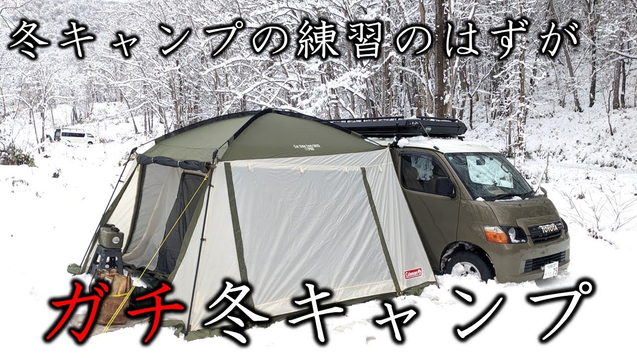タイトル【雪中キャンプ】レインボーストーブとカーサイドテントで氷点下の中キャンプをしてみたら快適だった|タウンエースで初めての冬キャンプ