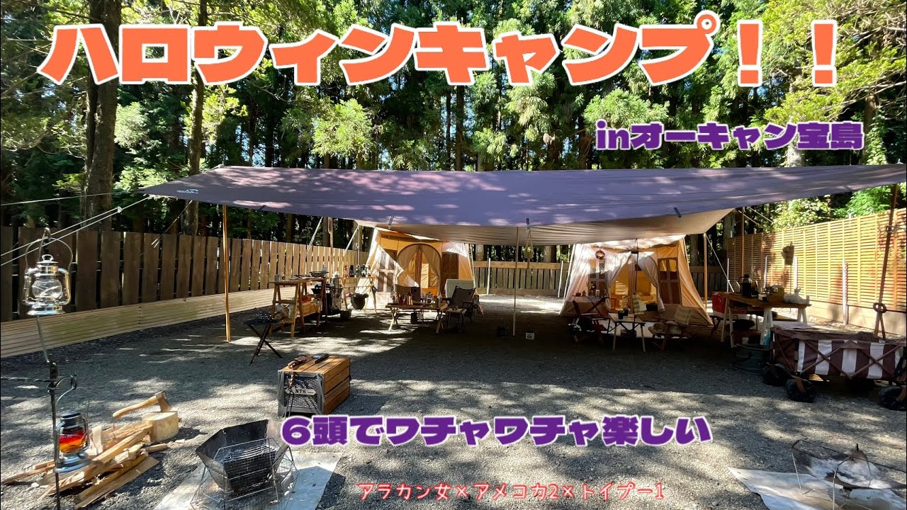 | タイトル | 【アラカン女×アメコカ2×トイプー1】大きなタープを使って双子コーデ? ペットに優しいオーキャン宝島キャンプ場 |
