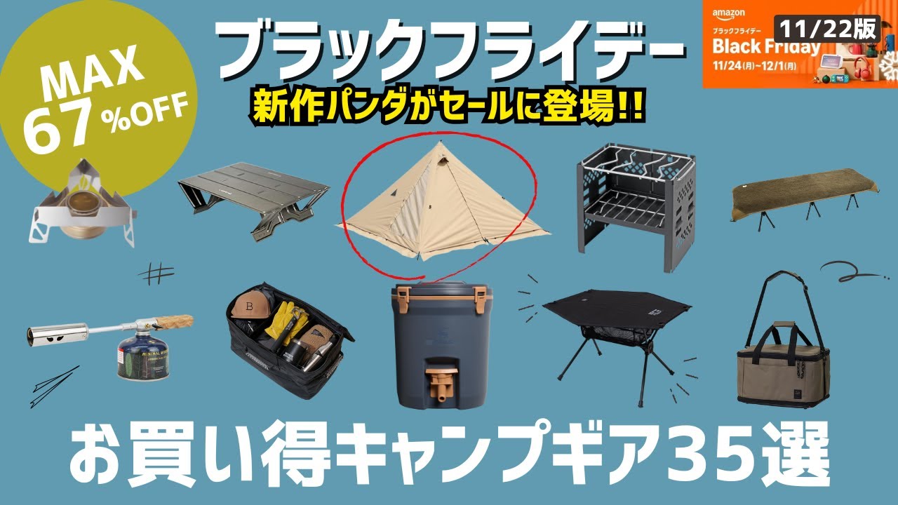 タイトルTPU窓の新作パンダが黒金に登場!毎回即売れするベルンのトレッキングパッドやエリステなど最後まで必見!Amazonブラックフライデーお買い得キャンプギア35選!【キャンプギア】