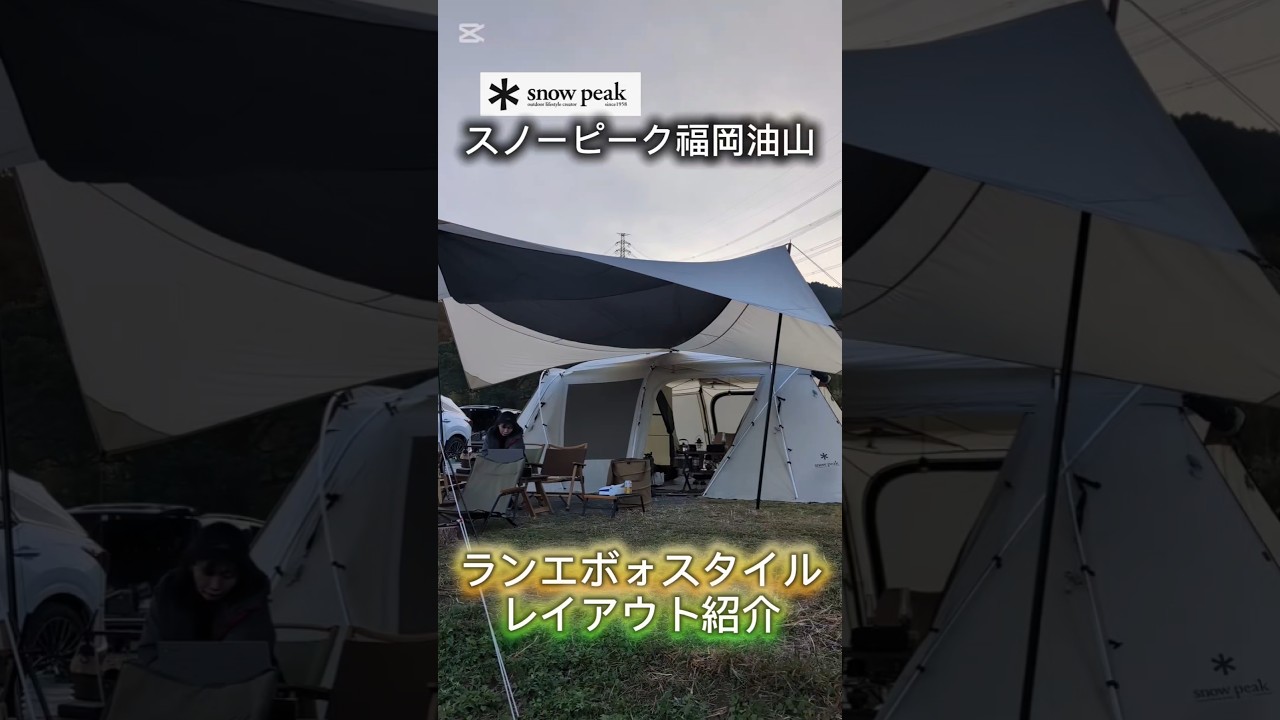 タイトル50代夫婦キャンプ スノーピーク福岡油山キャンプ場 ランドロックアイボリー ヘキサエボォPROアイボリー レイアウト紹介。
