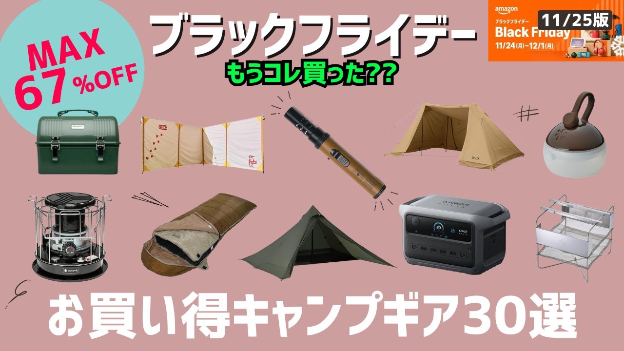 | タイトル | レッドレンザーやベアボーンズ、Jackeryが激安価格!今日もすぐ見ないと損!Amazonブラックフライデーお買い得キャンプギア30選!【キャンプギア】 |