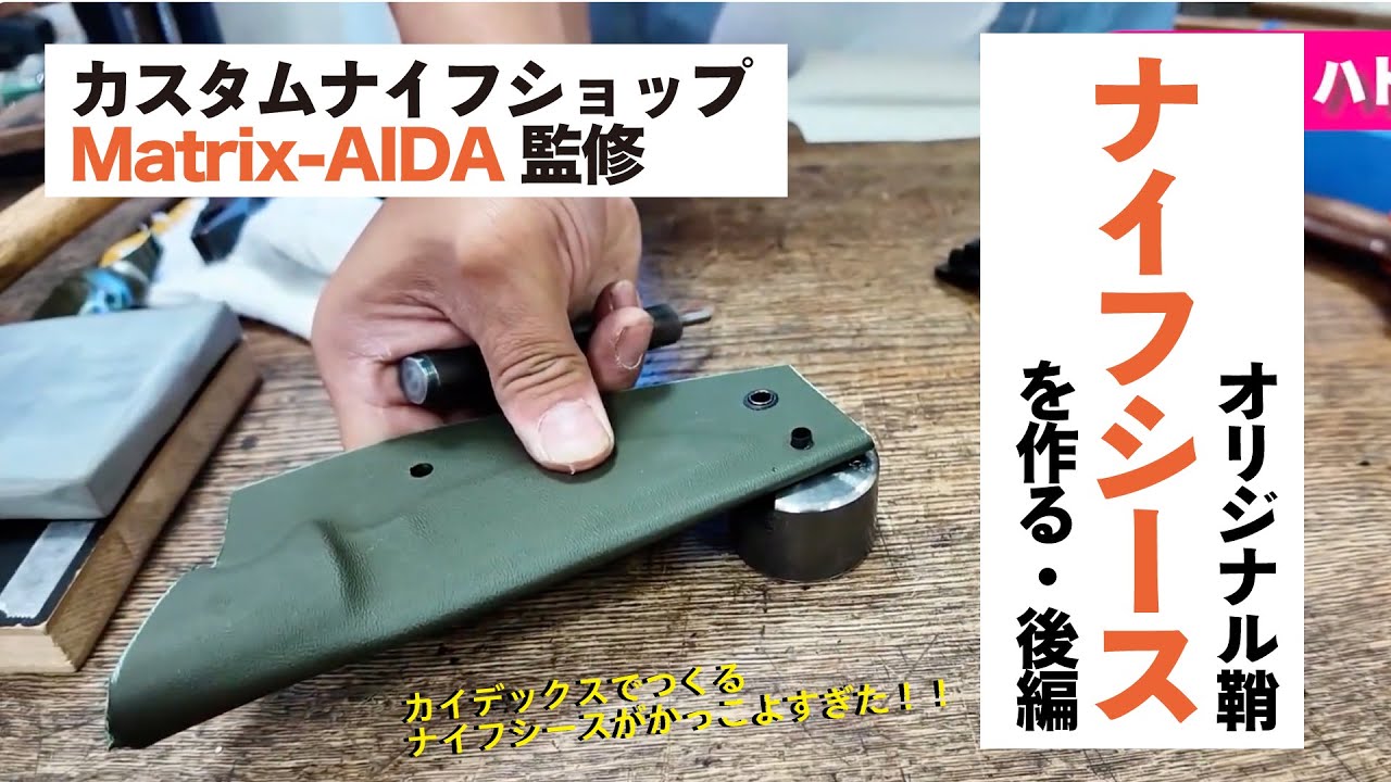| 説明文 | キャンプやサバイバルに欠かせない<ナイフ>カイデックスを使って、自分だけのオリジナルナイフシースを作る方法を紹介する動画です。後編では使用感に関わるハトメ打ちや仕上げの工程を、カスタムナイフショップM... |