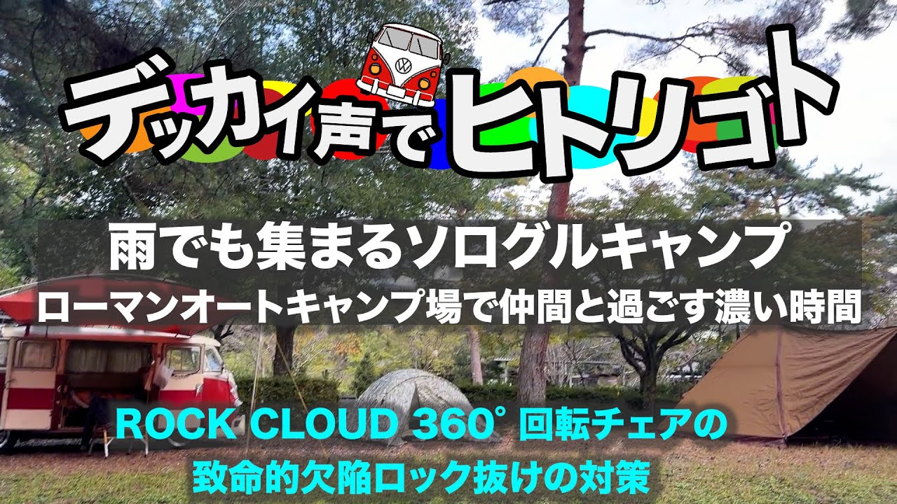 | タイトル | 雨でも集まるソログルキャンプ|ローマンオートキャンプ場で仲間と過ごす濃い時間 |