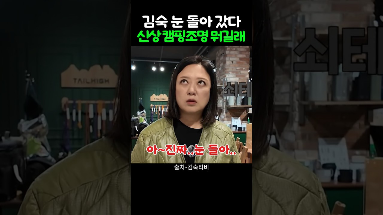 説明文캠핑 매니아로 유명한 김숙이 캠핑용품 매장에서 신상 캠핑 조명을 보고 실시간으로 눈 돌아가는 순간을 담았어요ㅋㅋ캠핑 좋아하는 분들이라면 이 반응 100% 공감하실 겁니다.요즘 인기...