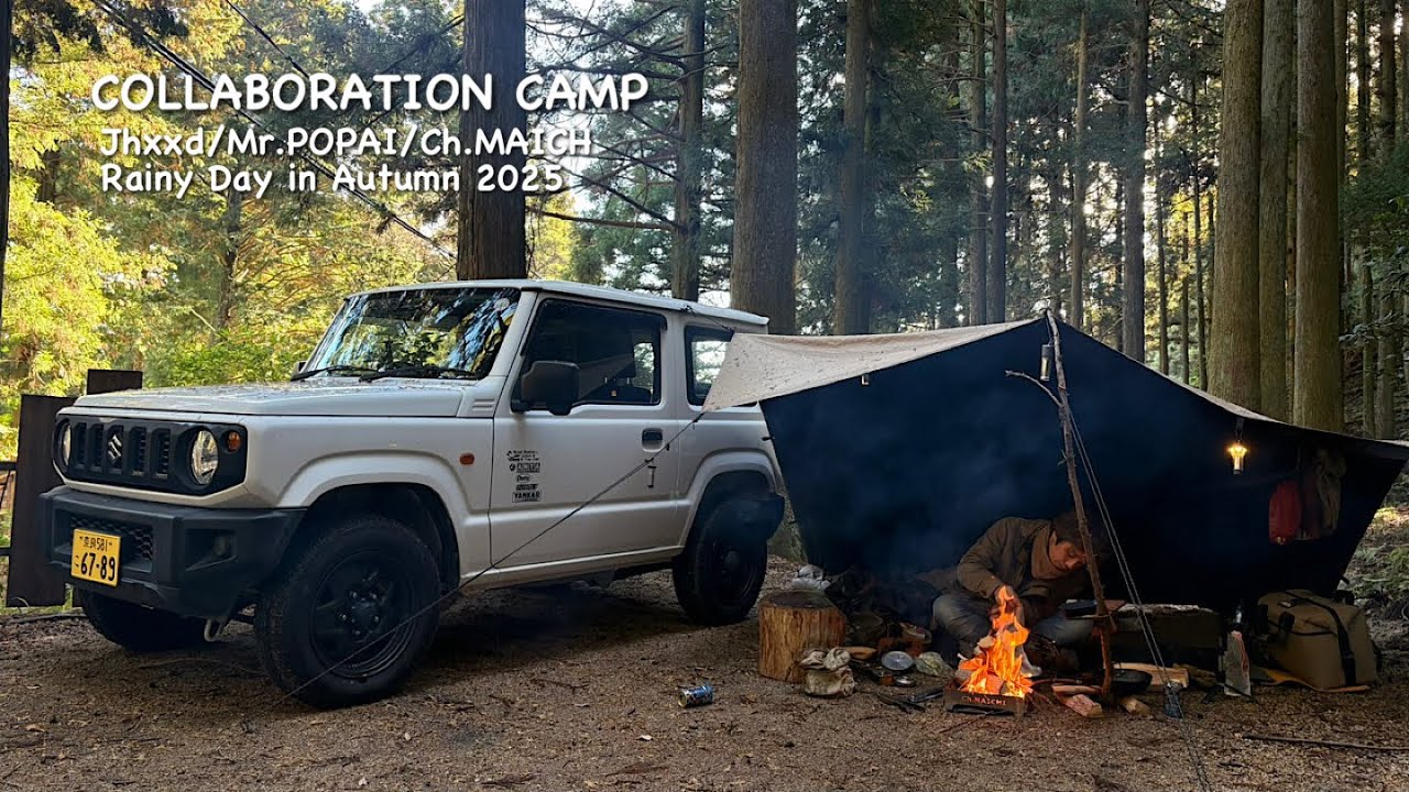 【キャンプ】冬の始まりタープ泊。雨の中焚火を囲むソロキャンパー/タープ泊、テント泊、車中泊…それぞれの寝床を携えて焚火飯と酒に舌鼓♩Tarp camping – Ch.MAICHIマイチちゃんねる