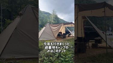 タープ 避暑地キャンプ◆オガワテント◆グルキャン◆ツインピルツフォークL◆カンガルーテント◆別居スタイル◆彦谷の里 – ごっさんCAMP 出典:YouTube / ごっさんCAMP 2025.09.30 タープ