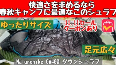 寝袋 【アリエク】 11.11セールクーポン有り 春秋キャンプで大活躍するゆったり快適シュラフ! – キャンプマニアックス NaaCamp 出典:YouTube / キャンプマニアックス NaaCamp 2025.11.11 寝袋