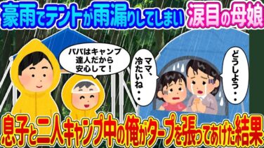 タープ 【2ch馴れ初め】豪雨でテントが雨漏りしてしまい涙目の母娘→息子と二人キャンプ中の俺がタープを張ってあげた結果…【ゆっくり】 – 馴れ初めゆっくりで最愛 2ch 出典:YouTube / 馴れ初めゆっくりで最愛 2ch 2025.10.04 タープ