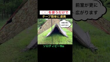 タープ ソロティピー1tcにDDタープは付属ポールのみで連結可能/タープ設営方法#ソロティピー1tc #DDタープ #キャンプ – SUE CAMP 出典:YouTube / SUE CAMP 2025.10.18 タープ