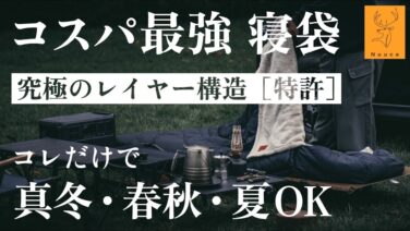 寝袋 【3-WAY寝袋 Nuuca Sleep Max】冬用寝袋・春秋用寝袋・夏用ブランケットで使える(クラファンで「日本で1番売れた寝袋」の最新モデル) – フクロウ【ソロキャンプ】 出典:YouTube / フクロウ【ソロキャンプ】 2025.11.07 寝袋