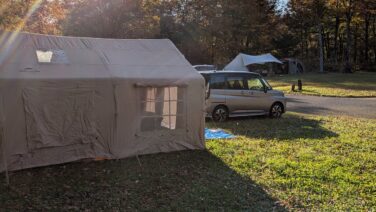 タープ 森の中で車上生活を楽しむ|空気で膨らむタープを力技で設営!肉のこん棒美味しい – おみつ OUTDOOR ちゃんねる
